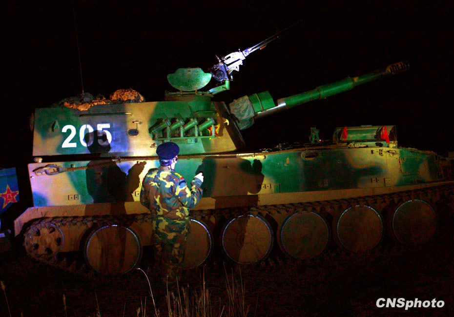 當晚國防大學防務學院、空軍指揮學院的外軍學員,以及英國、以色列、土耳其、巴基斯坦等國軍事觀察員親臨現(xiàn)場觀摩了后勤保障戰(zhàn)斗準備、自行榴彈炮占領陣地、裝甲車輛“摸黑”開進等戰(zhàn)斗要素。中新社發(fā) 宋吉河 攝