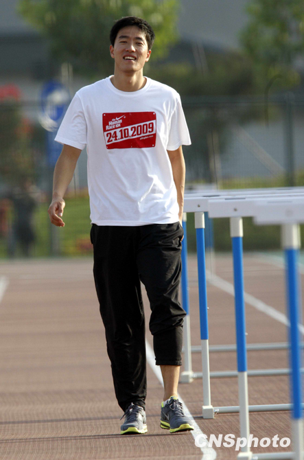 10月22日下午,“飛人”劉翔亮相濟南奧體中心田徑訓(xùn)練場,在教練孫海平的帶領(lǐng)下,輕松備戰(zhàn)全運會。來源:中國新聞網(wǎng)