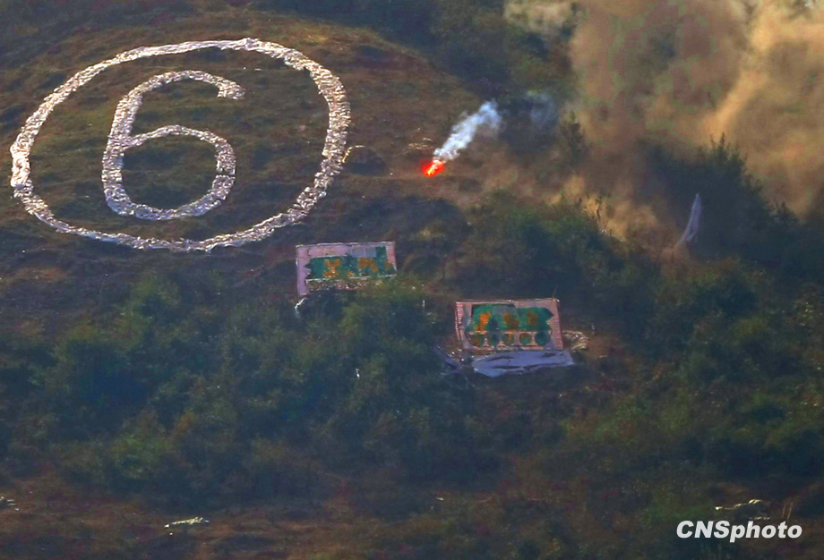 解放軍“前鋒-二00九A”演習(xí),二十二日在濟(jì)南軍區(qū)某合同戰(zhàn)術(shù)訓(xùn)練基地進(jìn)行陸空聯(lián)合火力打擊實(shí)兵實(shí)彈演練。中新社發(fā) 宋吉河 攝