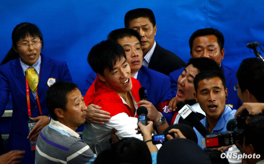 10月25日,在全運(yùn)會(huì)田徑男子110米欄決賽中,上海代表團(tuán)選手、“中國飛人”劉翔以13秒34的成績(jī)勇奪冠軍,同時(shí)也成就了其全運(yùn)會(huì)該項(xiàng)目三連冠的偉業(yè)。