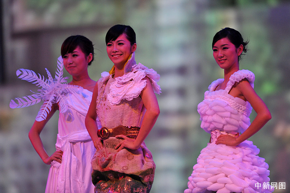 10月31日晚,“2009中華小姐環(huán)球大賽”總決賽上,12名入圍總決賽的佳麗身著各式服裝展現(xiàn)曼妙身姿,此外大賽還設計了一套“廢品服裝”呼吁環(huán)境保護。中新網(wǎng)記者 金碩 攝