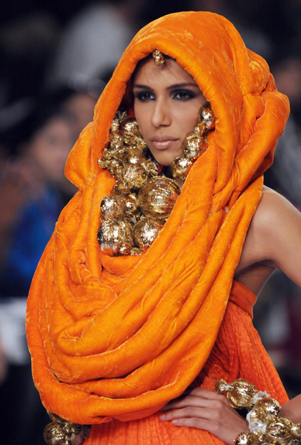 11月5日,巴基斯坦第一屆時裝周在卡拉奇拉開帷幕。美女模特們身著裸露雙肩和肚臍的非伊斯蘭傳統(tǒng)服裝在T臺上走秀。