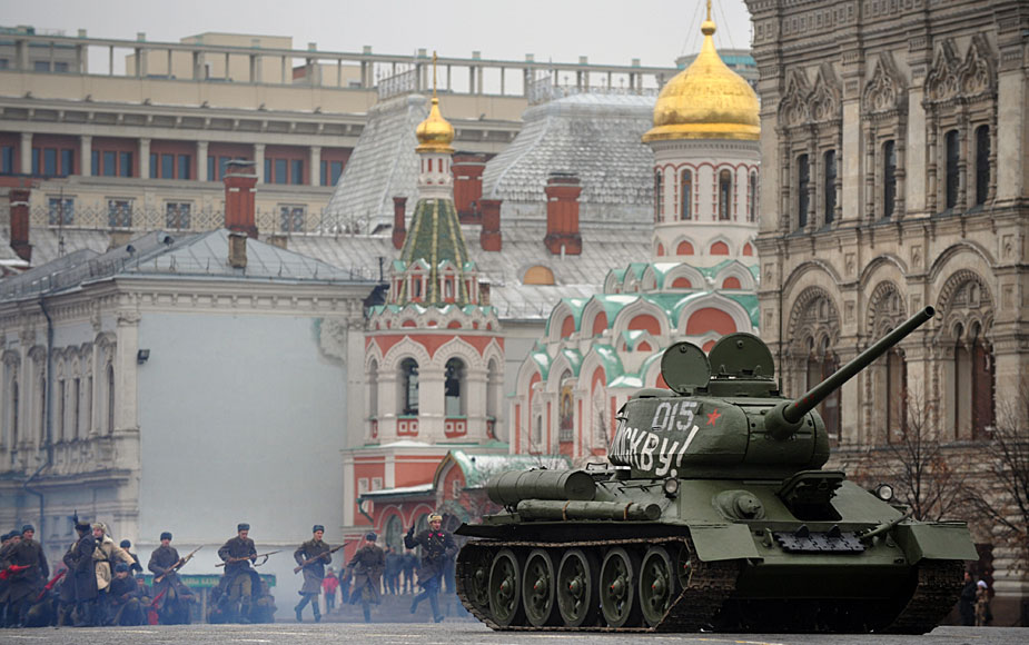 11月7日,俄羅斯士兵身穿二戰(zhàn)時(shí)期的軍服在莫斯科紅場(chǎng)舉行閱兵閱兵式紀(jì)念1941年紅場(chǎng)閱兵。圖片來源:中國新聞網(wǎng)