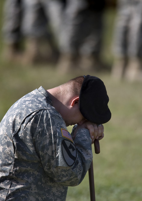 2009年11月10日,在美國得克薩斯州胡德堡陸軍基地,士兵在悼念儀式上哭泣。當(dāng)日,美國德克薩斯州胡德堡陸軍基地舉行儀式悼念槍擊案遇難者。 圖片來源:中國新聞網(wǎng)