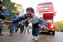 圖為11月10日人們?cè)诒本┮粭澒窍虑宄e雪。