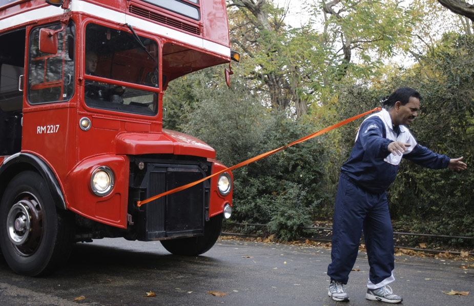 11月12日,一位名叫曼吉特·辛格的牛人在倫敦一個公園內以21.2米的成績打破了用頭發(fā)拉動雙層巴士最遠距離的吉尼斯世界紀錄。