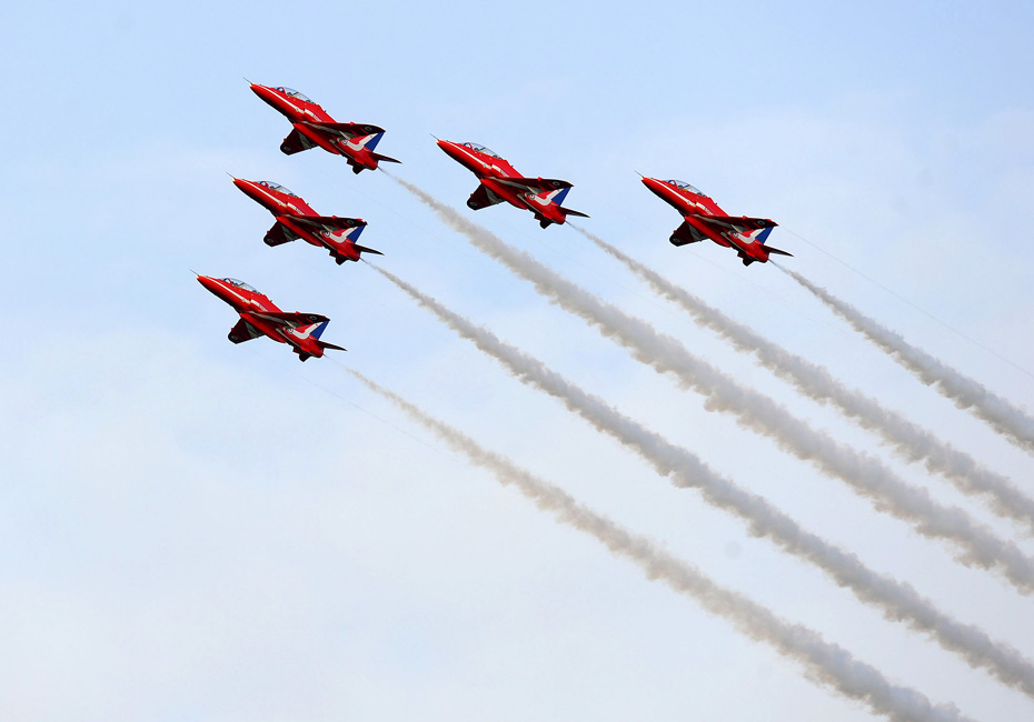 圖為紅箭飛行表演隊進行表演。
