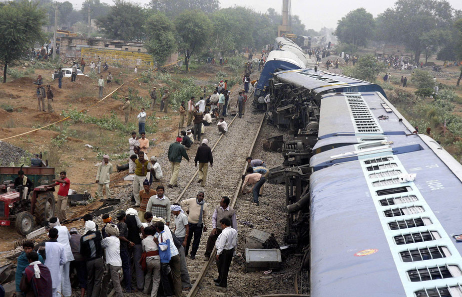 11月14日,印度西部拉賈斯坦邦一列駛往新德里的火車發(fā)生出軌事故,造成7人死亡,26人受傷。