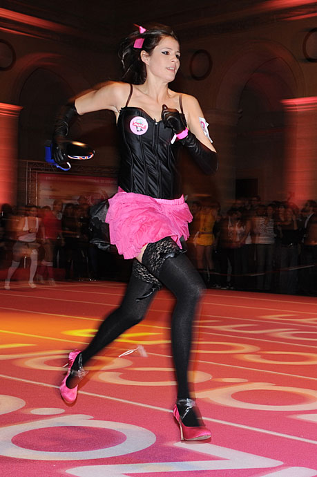 11月20日,法國巴黎舉行了有趣的室內高跟鞋賽跑比賽,總共32支隊伍96人一爭高下。圖片來源:中國新聞網(wǎng)