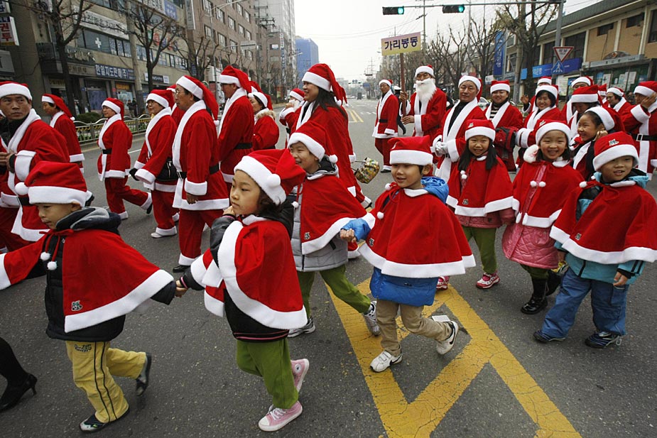 12月1日,韓國首都首爾市,一千多名“圣誕老人”舉行游行為社會(huì)慈善項(xiàng)目籌款。圖片來源:中國新聞網(wǎng)
