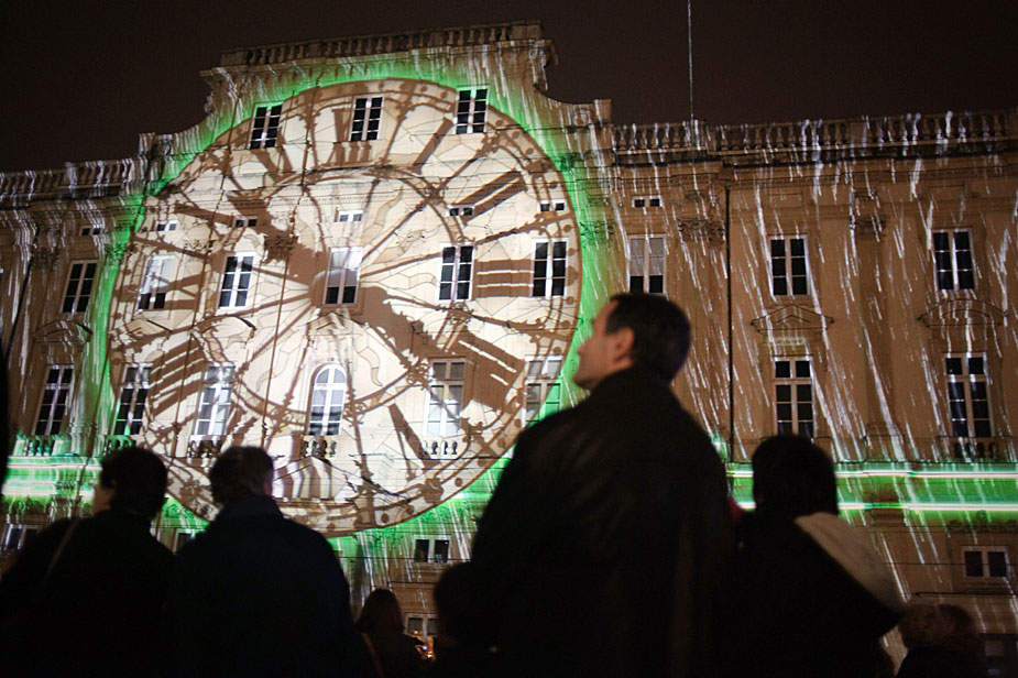 12月5日,在法國(guó)里昂,人們欣賞燈光表演。第11屆燈節(jié)到來之際,里昂城被五彩變幻的燈光裝飾。圖片來源:中國(guó)新聞網(wǎng)