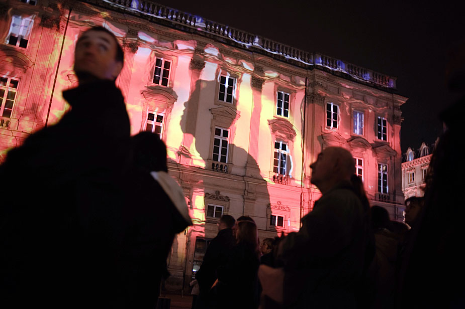 12月5日,在法國里昂,人們欣賞燈光表演。第11屆燈節(jié)到來之際,里昂城被五彩變幻的燈光裝飾。圖片來源:中國新聞網(wǎng)