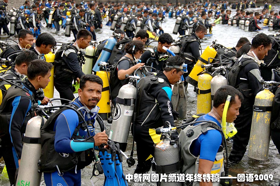 同時(shí)潛水最多人:8月16日,印尼2468名潛水員同時(shí)潛入水下,這一壯舉創(chuàng)造了一個(gè)新的吉尼斯世界紀(jì)錄。圖片來(lái)源:中國(guó)新聞網(wǎng)
