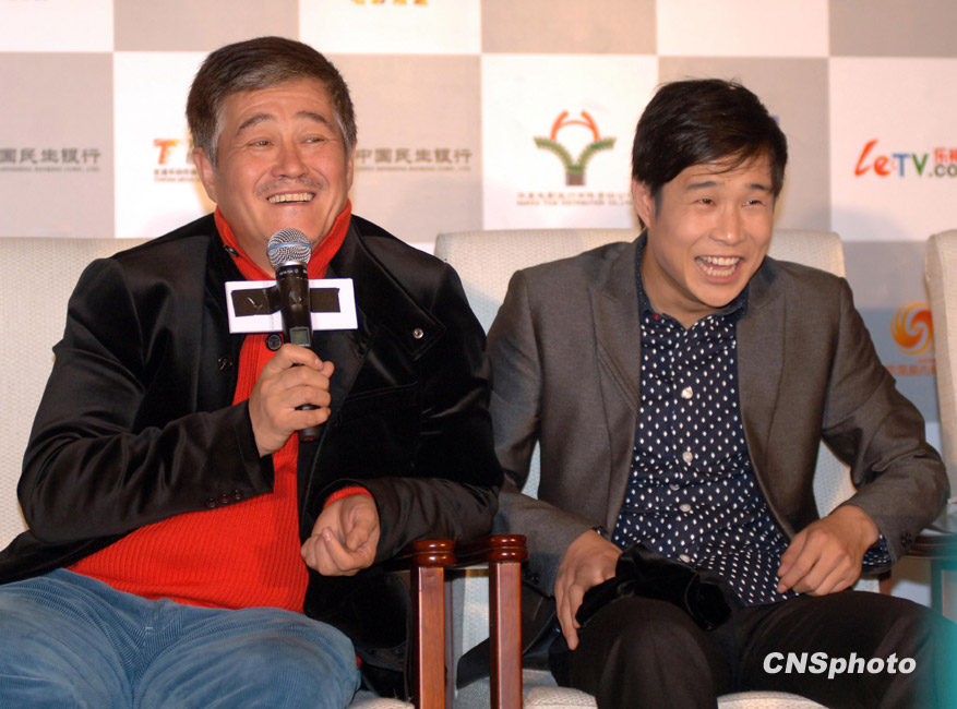 12月9日下午,張藝謀喜劇新作《三槍拍案驚奇》在京舉行首映發(fā)布會(huì),導(dǎo)演張藝謀、大病初愈的趙本山攜孫紅雷、小沈陽(yáng)、閆妮、倪大洪、程野、毛毛全明星主創(chuàng)團(tuán)隊(duì)齊齊亮相,F(xiàn)場(chǎng)張藝謀、趙本山、小沈陽(yáng)搞笑不斷,引得爆笑連連,上演了一出戲外喜劇。趙本山首度回應(yīng)了花兩億購(gòu)買(mǎi)私人飛機(jī)一事,稱(chēng)還沒(méi)有定下來(lái)。張藝謀表示會(huì)和“趙家班”繼續(xù)深度合作,并且豪言預(yù)計(jì)未來(lái)的中國(guó)電影單部影片票房可能達(dá)到2億美元。圖為張藝謀、趙本山、小沈陽(yáng)成為“笑彈”。中新社發(fā) 李學(xué)仕 攝