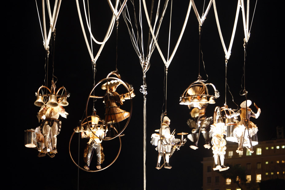 12月9日,墨西哥音樂舞蹈藝術家們進行了一場“空中快車”表演,摩納哥的藝術家們吊在起重機上演奏樂器并表演空中舞蹈。圖片來源:中國新聞網