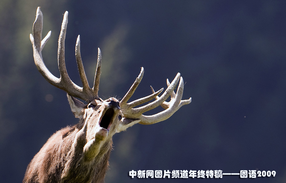奧地利蒂羅爾州的一個野生動物園內(nèi),一只發(fā)情的雄鹿在嘶吼。