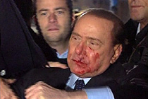 意大利總理貝盧斯科尼13日晚間受邀在米蘭參加一個(gè)集會(huì)時(shí)遭到襲擊,面部受傷流血,隨后被緊急送醫(yī)治療。圖片來(lái)源:中國(guó)新聞網(wǎng)