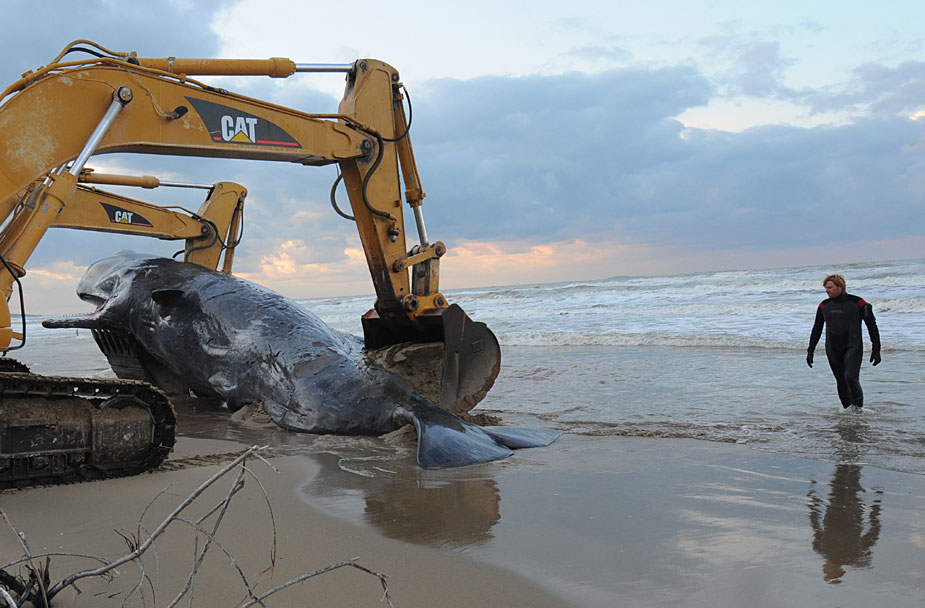一群抹香鯨12月12日在意大利南部海灘擱淺,其中至少5頭已經(jīng)死亡。據(jù)稱,這群抹香鯨共有9頭,其中有2頭經(jīng)過救援已成功游回大海,目前相關(guān)人員對另外2頭正在進行救援。圖片來源:中國新聞網(wǎng)