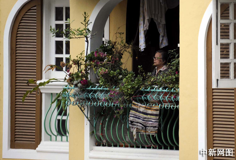 澳門老城區(qū)的居民陽臺。中新社記者 廖攀 攝