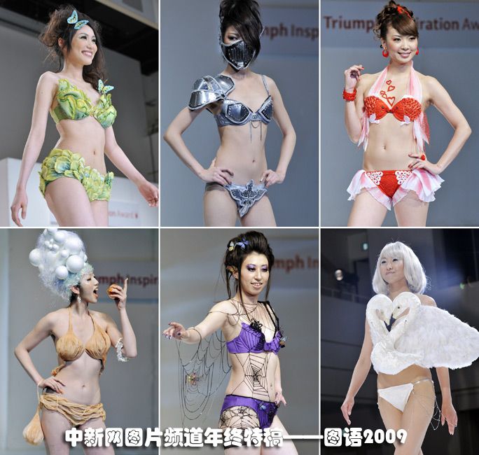 5月25日,日本東京舉辦了一場內(nèi)衣創(chuàng)意設(shè)計大賽,作品風格新奇搞怪,有白菜、圣女、金魚、天鵝、蜘蛛、甚至洋蔥等多種造型,火辣的模特配以怪異的內(nèi)衣,令觀眾大飽眼福。
