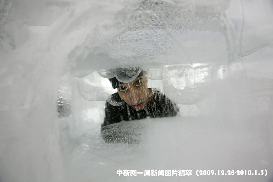 周二(29日),以色列魔術(shù)師赫齊·達揚在位于特拉維夫的拉賓廣場上,達揚赤身進入一塊8噸重的冰塊里,開始了挑戰(zhàn)冰屋生存世界紀錄之旅。圖片來源:中國新聞網(wǎng)