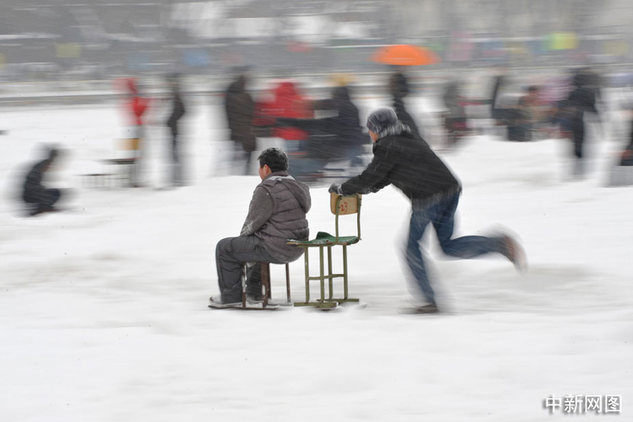 北京雖然普降大雪,但是仍然擋不住游人玩耍的心情。中新網(wǎng)記者 金碩 攝