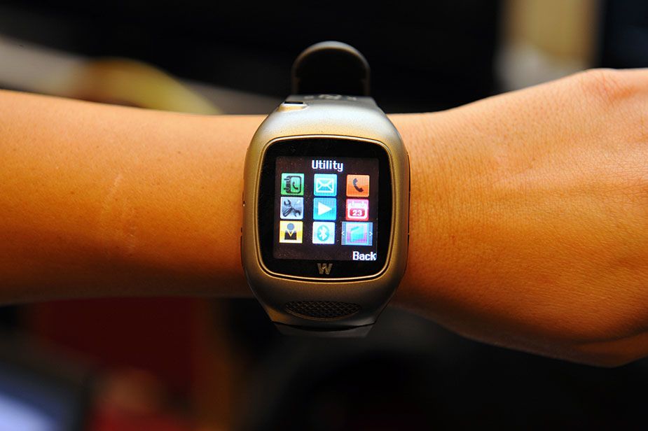 圖為國際消費(fèi)電子展上展示新型手表式手機(jī)。