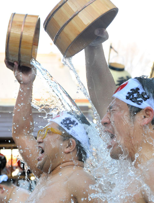 1月9日,日本東京,眾多日本民眾參加傳統(tǒng)的凈化儀式,他們用冷水澆身,祈禱身體和靈魂得到凈化。