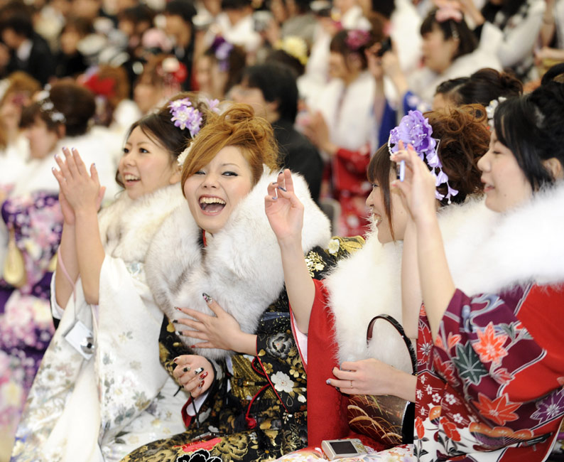 1月11日,日本迎來(lái)2010年的成人節(jié)日,所有年滿20歲的年輕人都將在這一天宣告自己邁進(jìn)了成人行列。眾多年輕的日本女孩身穿和服在東京迪斯尼樂(lè)園里快樂(lè)游玩,迎接自己的節(jié)日。