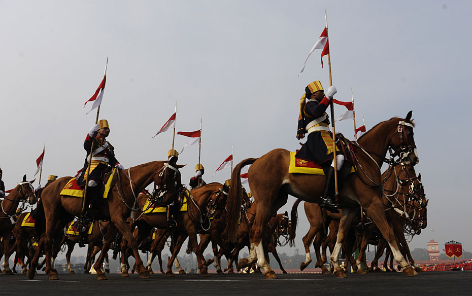 圖為印度陸軍騎兵在建軍節(jié)上進(jìn)行隊(duì)列表演。