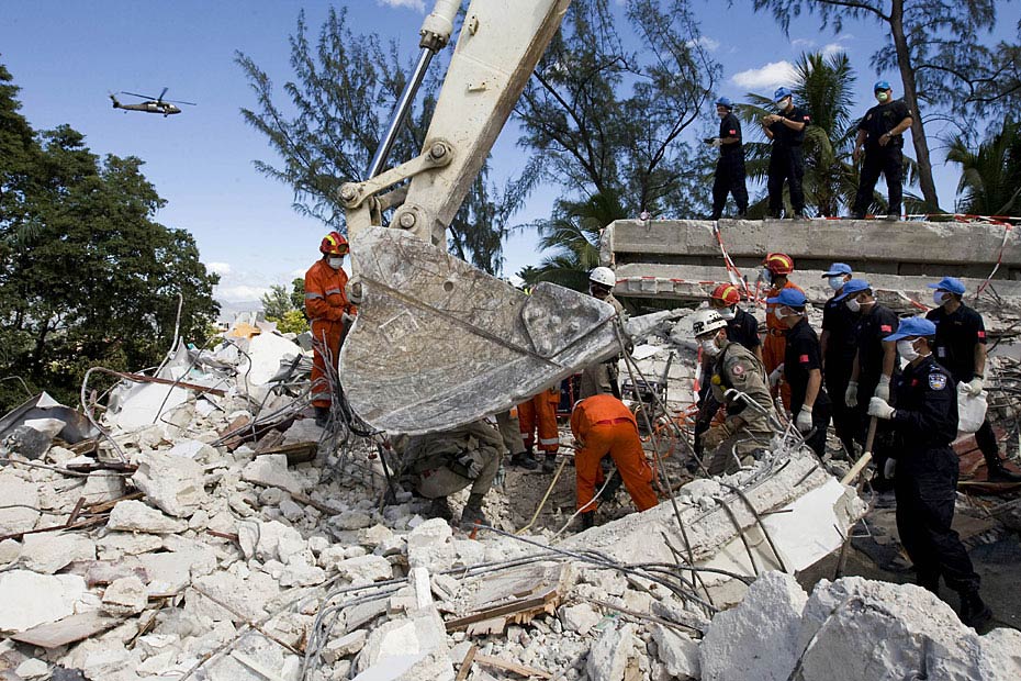 1月16日,海地首都太子港,中國國際救援隊(duì)在聯(lián)海團(tuán)總部對遇難者進(jìn)行搜尋工作。此前八名中方失蹤人員的遺體已全被找到。圖片來源:中國新聞網(wǎng)