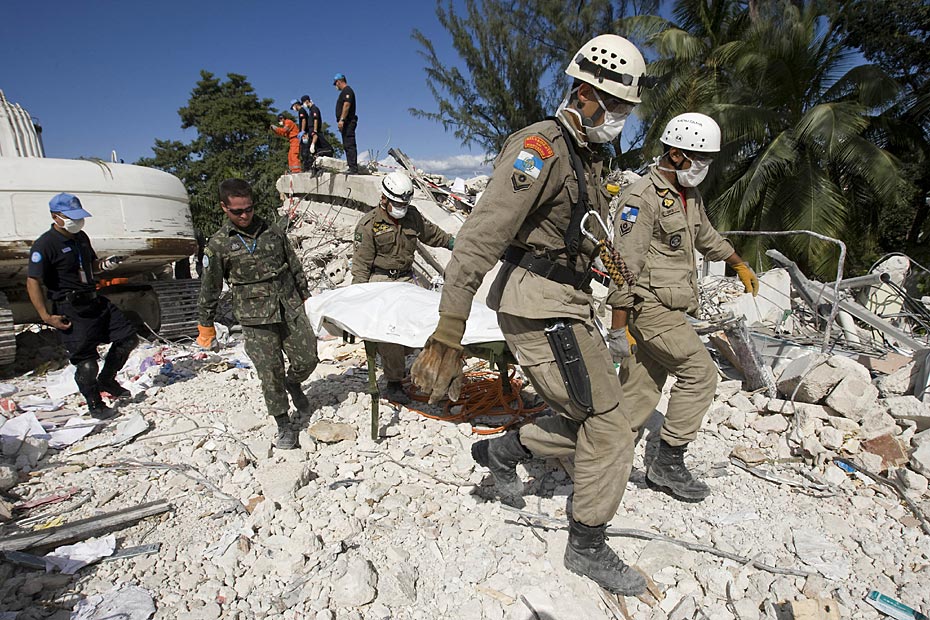 1月16日,海地首都太子港,中國國際救援隊(duì)在聯(lián)海團(tuán)總部對(duì)遇難者進(jìn)行搜尋工作。此前八名中方失蹤人員的遺體已全被找到。圖片來源:中國新聞網(wǎng)