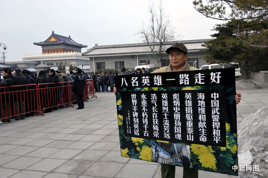 海地地震遇難中國維和警察遺體告別儀式1月20日上午9時在北京八寶山殯儀館大禮堂舉行。圖片來源:中國新聞網(wǎng)