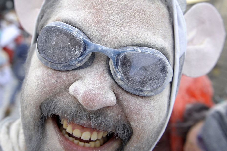 圖為人們參加狂歡節(jié)“面粉大戰(zhàn)”。