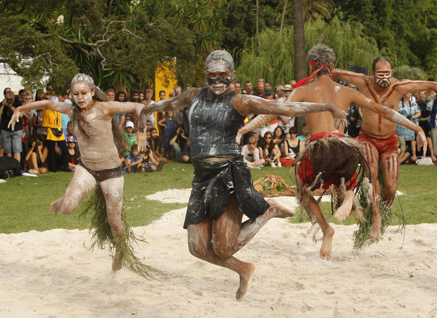 1月26日,澳大利亞土著居民在悉尼表演傳統(tǒng)舞蹈慶祝澳大利亞國慶日。