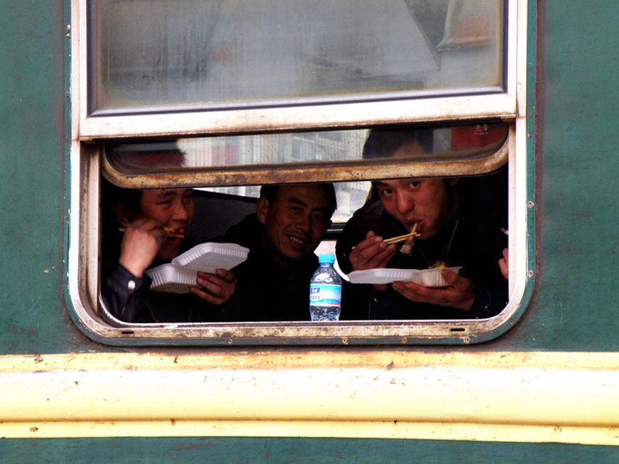 一年一度的春運(yùn)今日起正式開(kāi)始。2010年的春運(yùn)從1月30日起至3月10日,為期40天,其中節(jié)前15天,節(jié)后25天。據(jù)權(quán)威預(yù)測(cè),今年春運(yùn)客運(yùn)量料超25億人次。圖為1月30日,春運(yùn)啟幕,湖北宜昌火車(chē)站,旅客在火車(chē)上吃午餐。劉君鳳 攝
