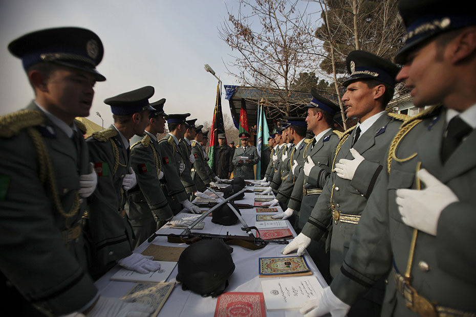 2月3日,在阿富汗首都喀布爾,550多名警校學(xué)員舉行畢業(yè)典禮。阿富汗計(jì)劃在2011年擁有30萬名國(guó)家安全人員,逐步實(shí)現(xiàn)依靠本國(guó)力量處理國(guó)內(nèi)治安問題。圖片來源:中國(guó)新聞網(wǎng)