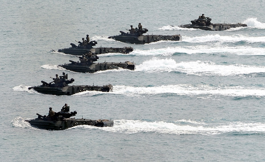 2月4日,參加“金色眼鏡蛇”聯(lián)合軍演的各國(guó)軍隊(duì),在泰國(guó)的Rayong省沙灘進(jìn)行了兩棲登陸演練。本次聯(lián)合軍演共有來(lái)自泰國(guó)、美國(guó)、印度尼西亞、新加坡、日本、韓國(guó)的約1.4萬(wàn)名軍人參加。圖片來(lái)源:中國(guó)新聞網(wǎng)