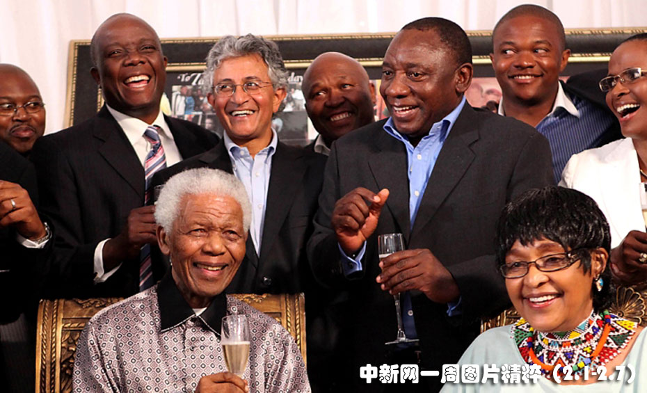 2月4日(周四),南非前總統(tǒng)曼德拉與前妻維尼在約翰內(nèi)斯堡與家人和支持者共同慶祝曼德拉獲釋二十周年。圖片來源:中國新聞網(wǎng)