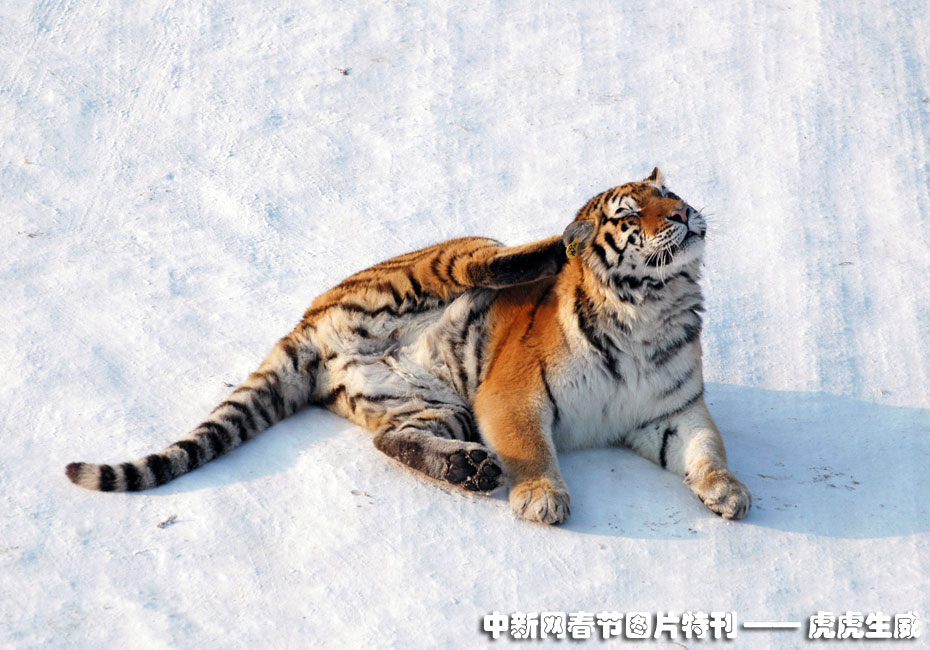 1月13日,黑龍江東北虎林園,老虎在雪地中嬉戲追逐。(王少華 張書儉 攝) 圖片來源:中國新聞網(wǎng)
