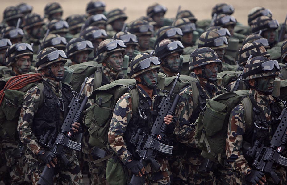 當(dāng)?shù)貢r(shí)間2月12日,尼泊爾士兵在首都加德滿都舉行了建軍節(jié)閱兵式。尼泊爾總統(tǒng)和總參謀長檢閱了受閱部隊(duì)。圖片來源:中國新聞網(wǎng)