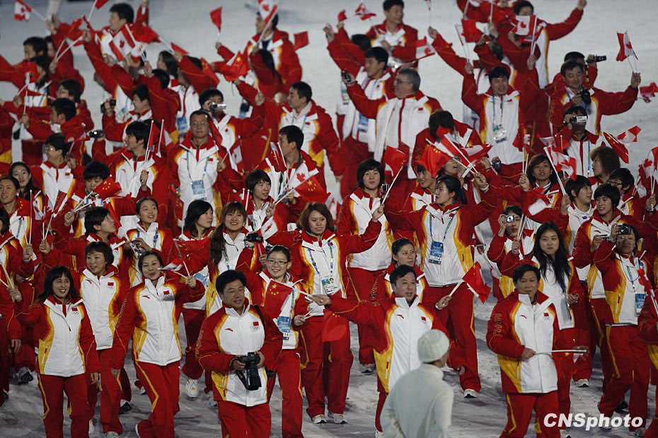 圖為中國冬奧代表團(tuán)運(yùn)動(dòng)員入場(chǎng)。