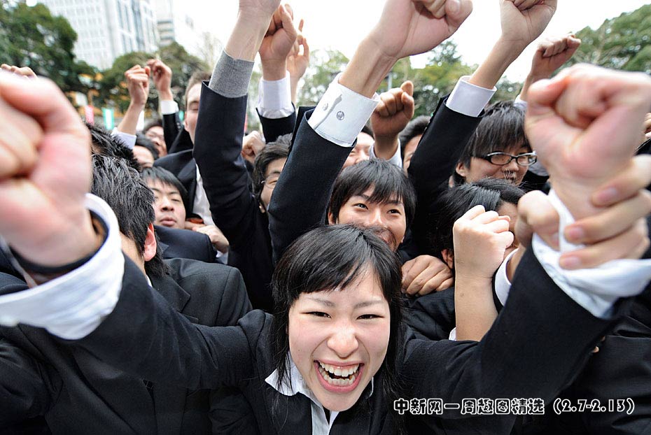 2月10日,日本東京職業(yè)學(xué)校的學(xué)生在求職動(dòng)員會(huì)上伸出拳頭展現(xiàn)信心。日本的失業(yè)率達(dá)5%,2011屆畢業(yè)生將面臨嚴(yán)峻就業(yè)形式。圖片來源:中國(guó)新聞網(wǎng)>>點(diǎn)擊觀看詳細(xì)內(nèi)容