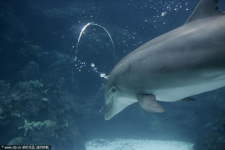 近日,美國奧蘭多海洋世界的一只寬吻海豚吹出“心形”氣泡,似乎要在情人節(jié)來臨前夕傳達(dá)濃濃愛意。圖片來源:CFP