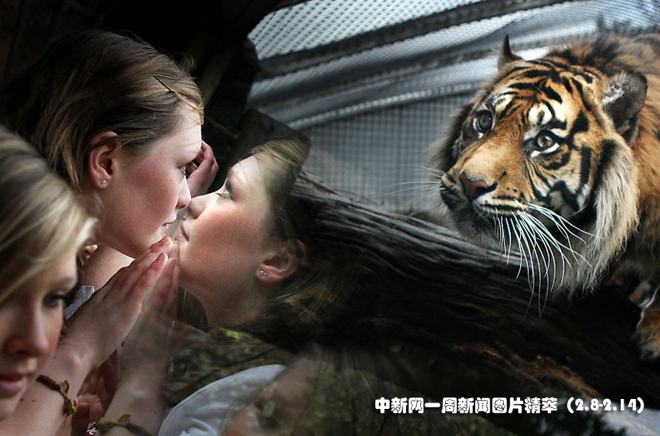 周一(8日)學(xué)生們參觀愛丁堡動(dòng)物園時(shí),隔著玻璃與一只蘇門達(dá)臘虎面對(duì)面。