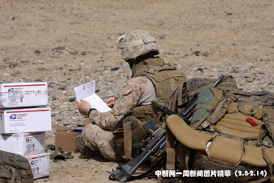 周四(11日),阿富汗,一名美國(guó)士兵正在翻看一封印有口紅唇印的信件。