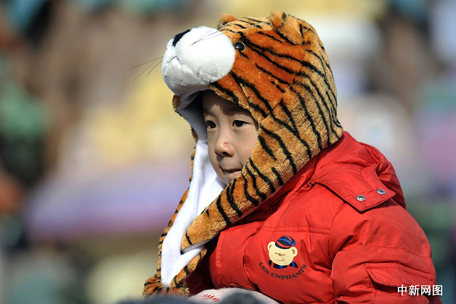 2月14日,農(nóng)歷正月初一,北京各大傳統(tǒng)廟會、洋廟會爭相開幕,許多游客頭戴虎年飾品開心游廟會。中新網(wǎng)記者 金碩 攝