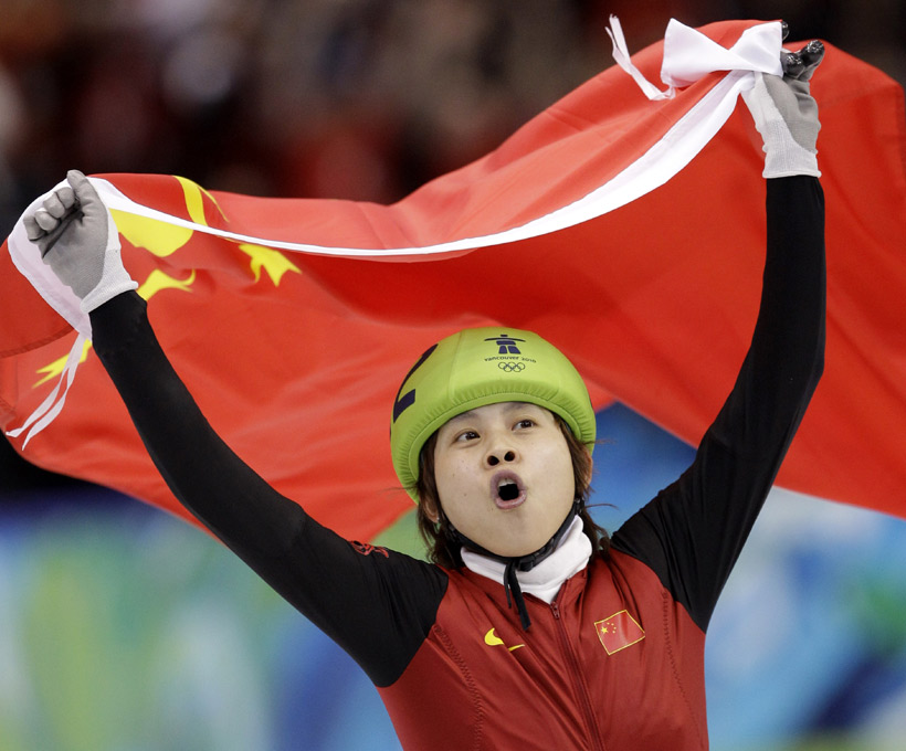 2010年溫哥華冬奧會(huì)短道速滑女子500米決賽北京時(shí)間2月18日上午11時(shí)許舉行,中國選手王濛獲得冠軍,為中國代表團(tuán)再添一枚金牌。圖片來源:中國新聞網(wǎng)