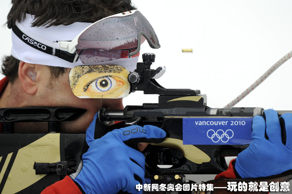 男子冬季兩項比賽中,挪威選手的眼罩別具一格。圖片來源:中國新聞網