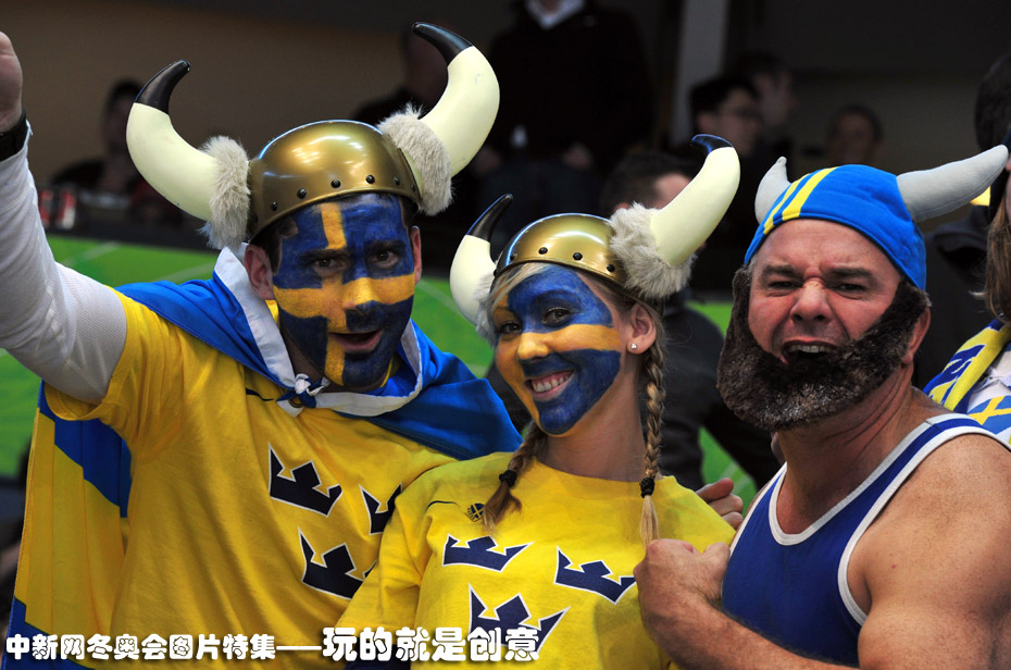 圖為冰球賽場上快樂的瑞典球迷。圖片來源:中國新聞網(wǎng)